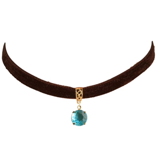 ベルベットチョーカー ヴィンテージクリアブルーカットガラスチャーム