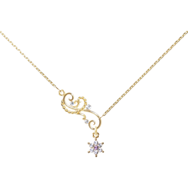 繊細な雪の結晶を表現したスノーフラワーモチーフに、美しい輝きを放つスワロフスキークリスタルをあしらった、エレガントで上品なネックレスです。