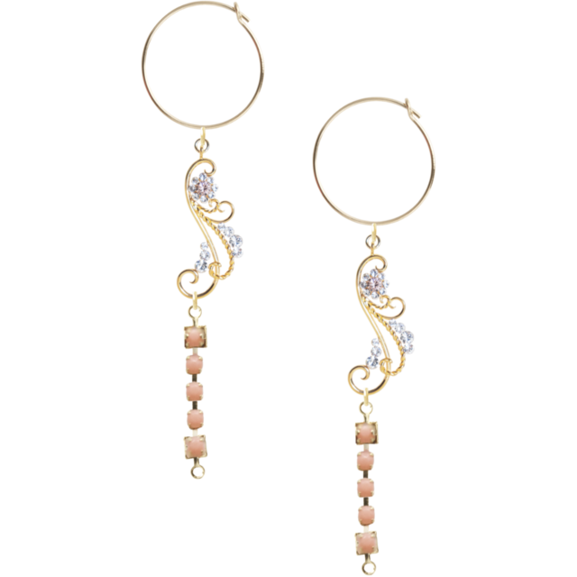 このピアスは、職人の手で一つ一つ作り上げられています。フープピアスは耐久性に優れ、長くご愛用いただけます。また、パーツに使用されているクリスタルは高品質で、輝きが美しいのが特徴です。さらに、フェザーパーツは上品な質感で、エレガントな印象を演出します。